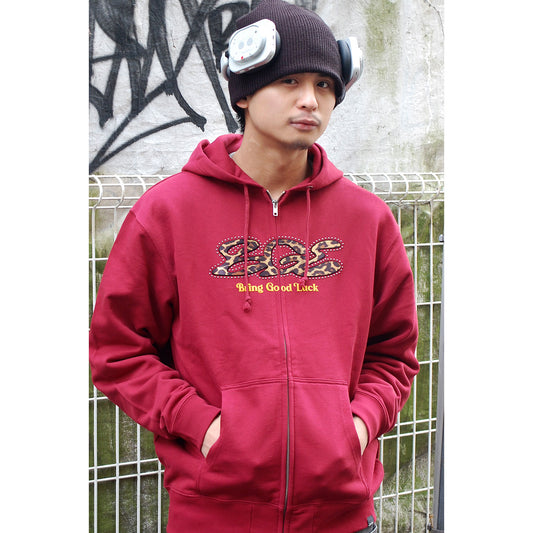 LEOPARD STUDS ZIP PARKA -BURGUNDY-