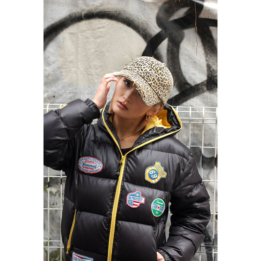 LEOPARD STUDS ZIP PARKA -BLACK-