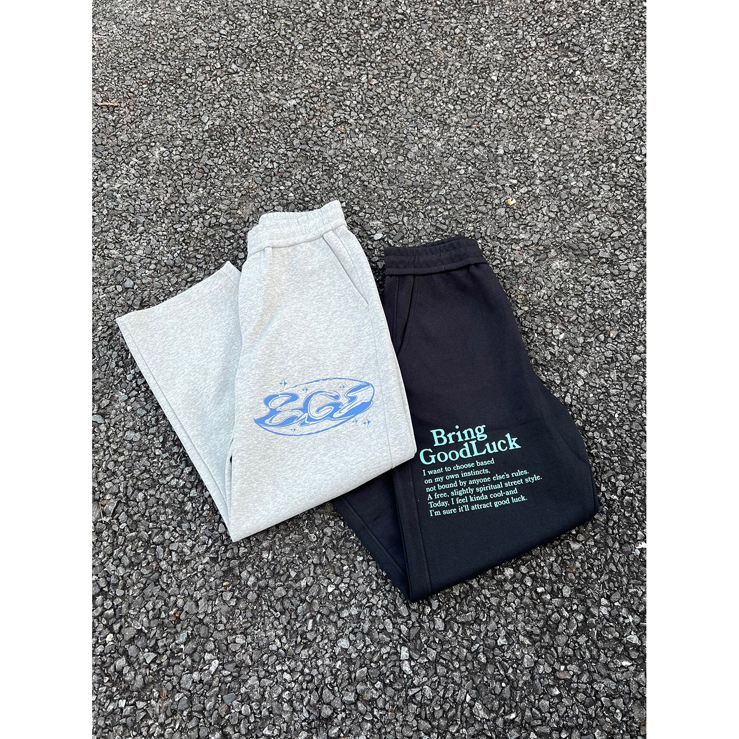 PRINT SWEAT PANTS -BLACK-