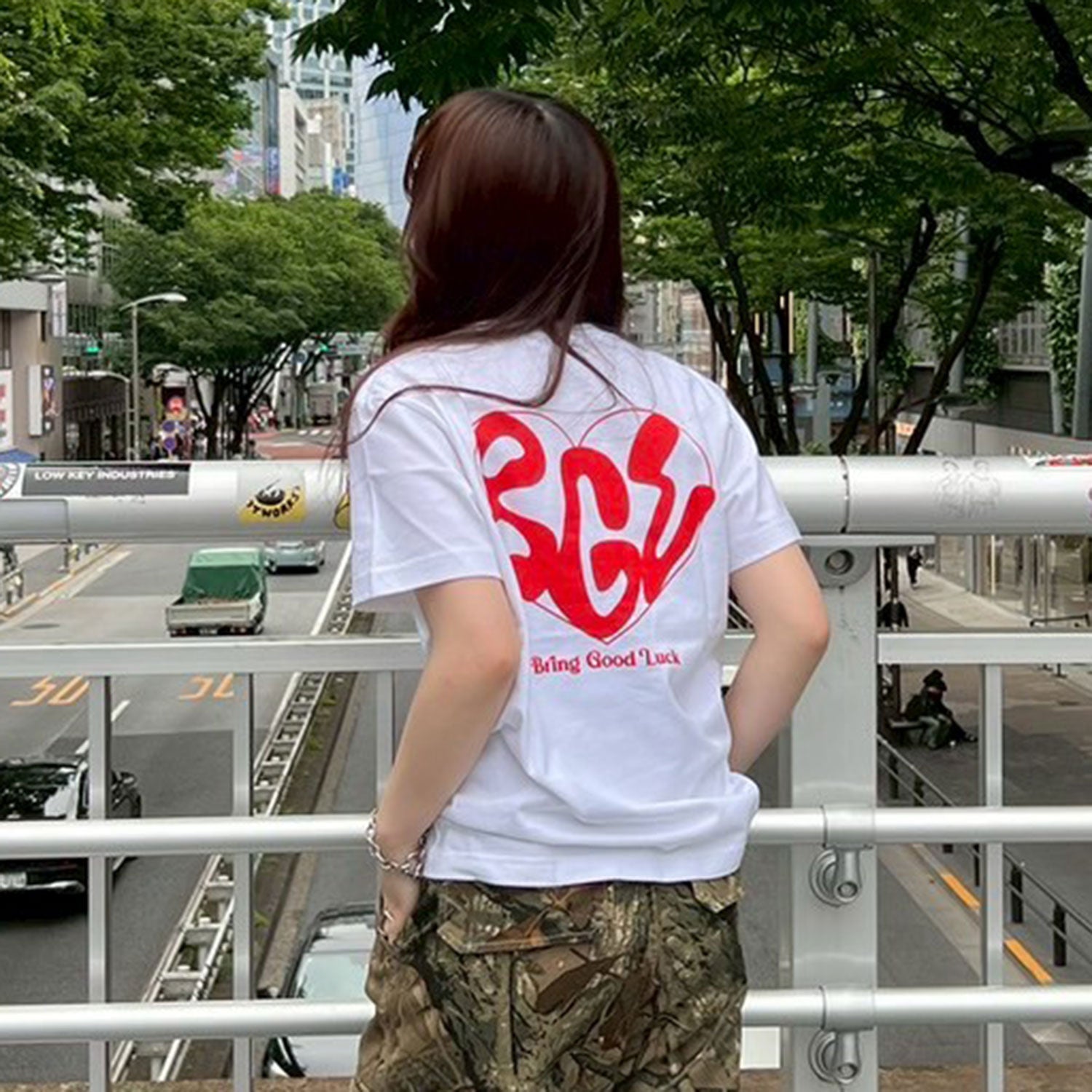 トレンド感のあるハート柄と定番ロゴをミックスさせたTシャツ。