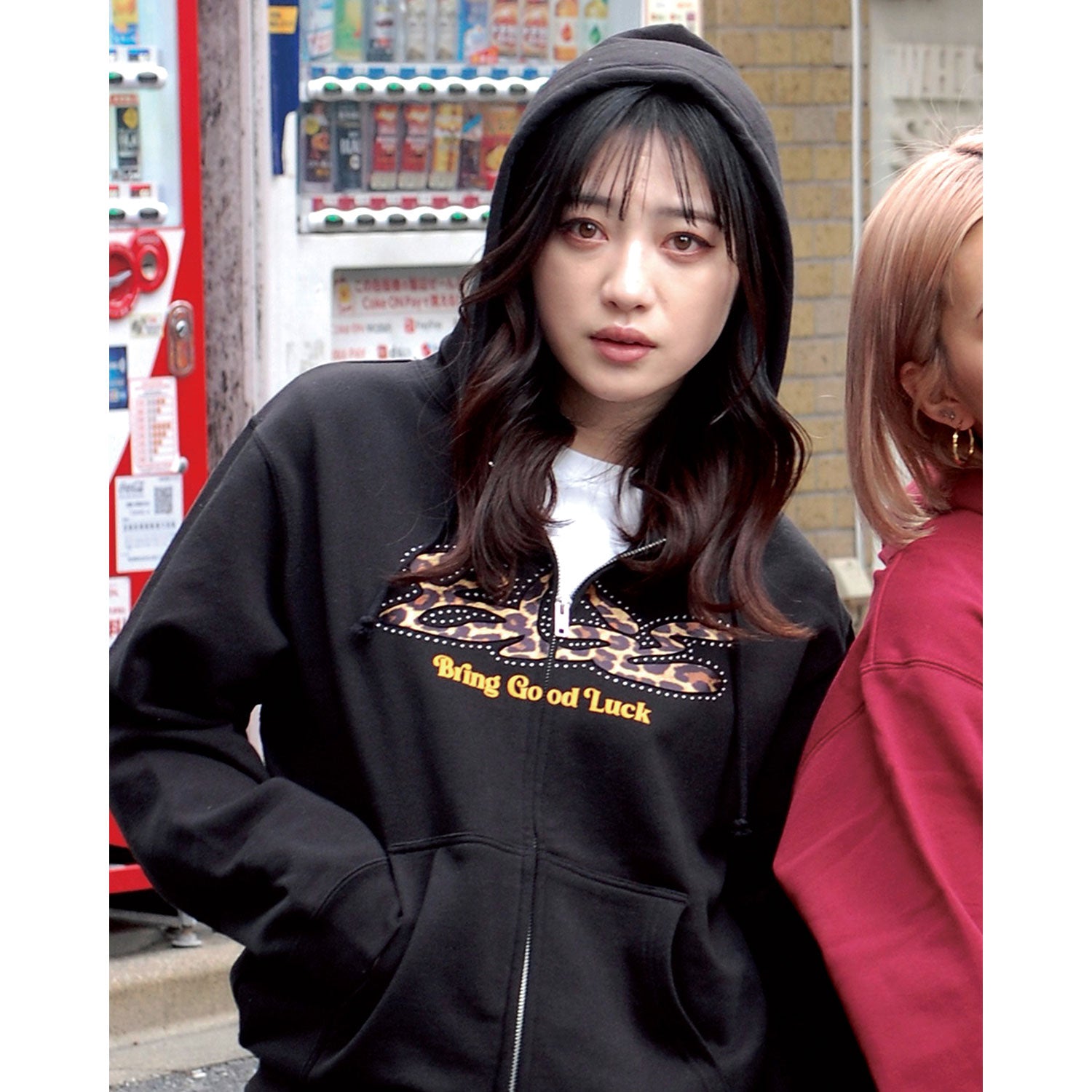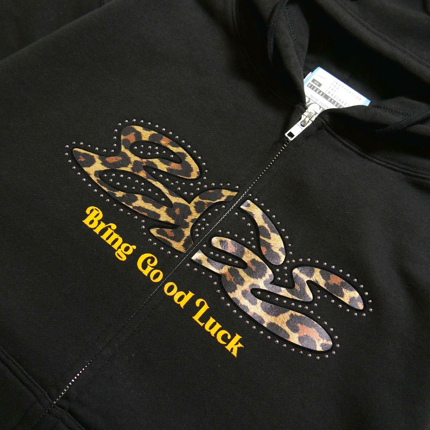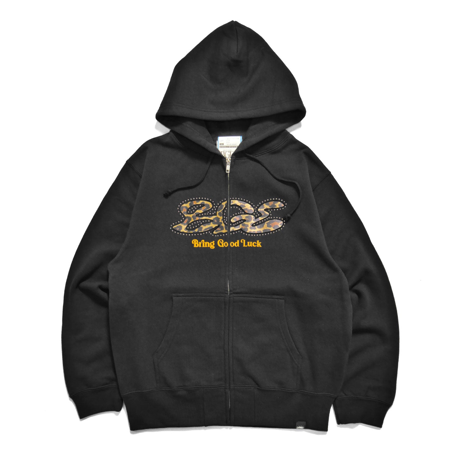 フロントにサテンのレオパード生地と圧着スタッズをあしらってBGLロゴを表現しました💫